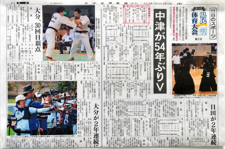 2016年9月11日/ 最終更新日時 : 2018年6月11日 中津レンタカー活動報告2016 ・09/11 平成28年度第69回大分県民体育大会軟式野球競技において中津市が優勝号外です!! 大分県民体育大会で、中津市の優勝は実に54年振り(3回目)だそうです。地元開催の強みでしょうか。応援に駆け付けて頂いた大勢の声援を受け、決勝戦は強豪の佐伯市との対戦に勝利し優勝!長期計画でチームを作り上げてきた成果が出ました。 那須監督以下選手の皆さんおめでとう!! ≪記事一覧に戻る