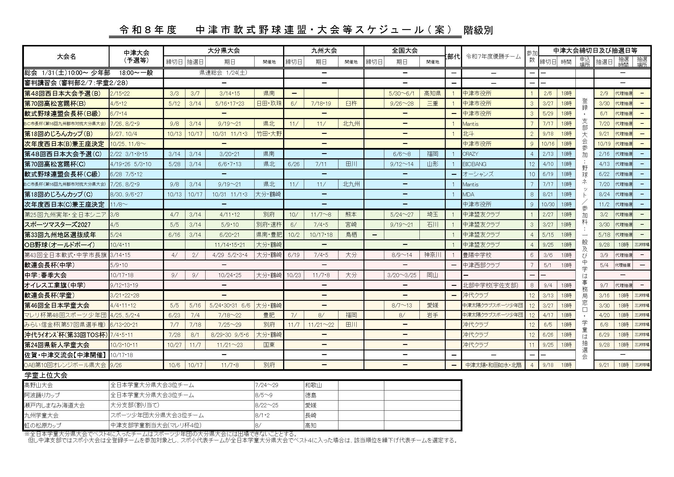 click□(PDFファイル) ⇒ 令和8年度大会スケジュール日程表⑥20260220