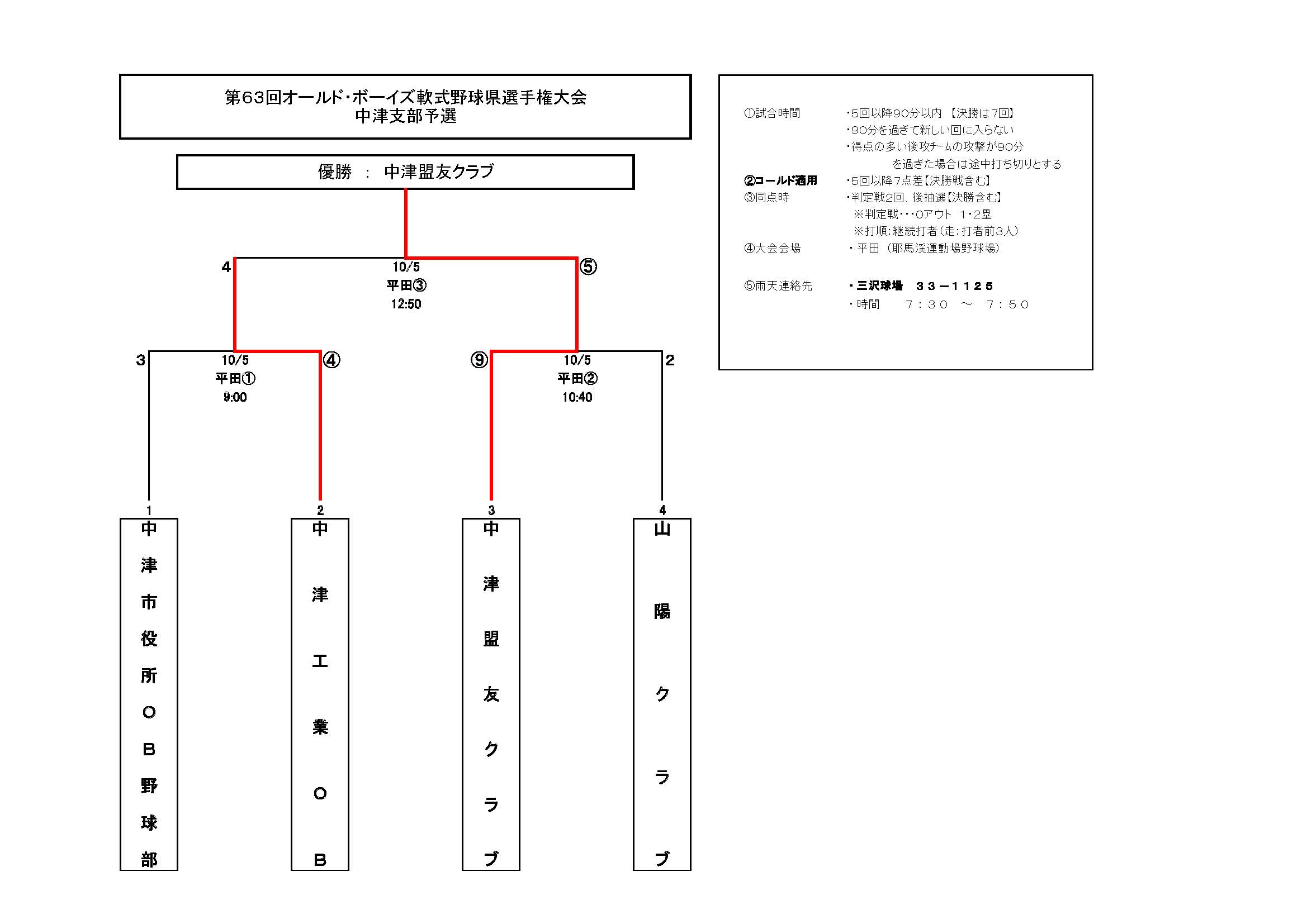 2025年10月5日/ 最終更新日時 : 2025年10月5日 中津レンタカー組合せ・結果2025 ・10/05 令和7年度第63回オールド・ボーイズ軟式野球県選手権大会中津支部予選は《中津盟友クラブ》が優勝しました。・令和7年度第63回オールド・ボーイズ軟式野球県選手権大会中津支部予選は《中津盟友クラブ》が優勝しました。click□(PDFファイル) ⇒ オールドボーイズ2025③ ≪記事一覧に戻る