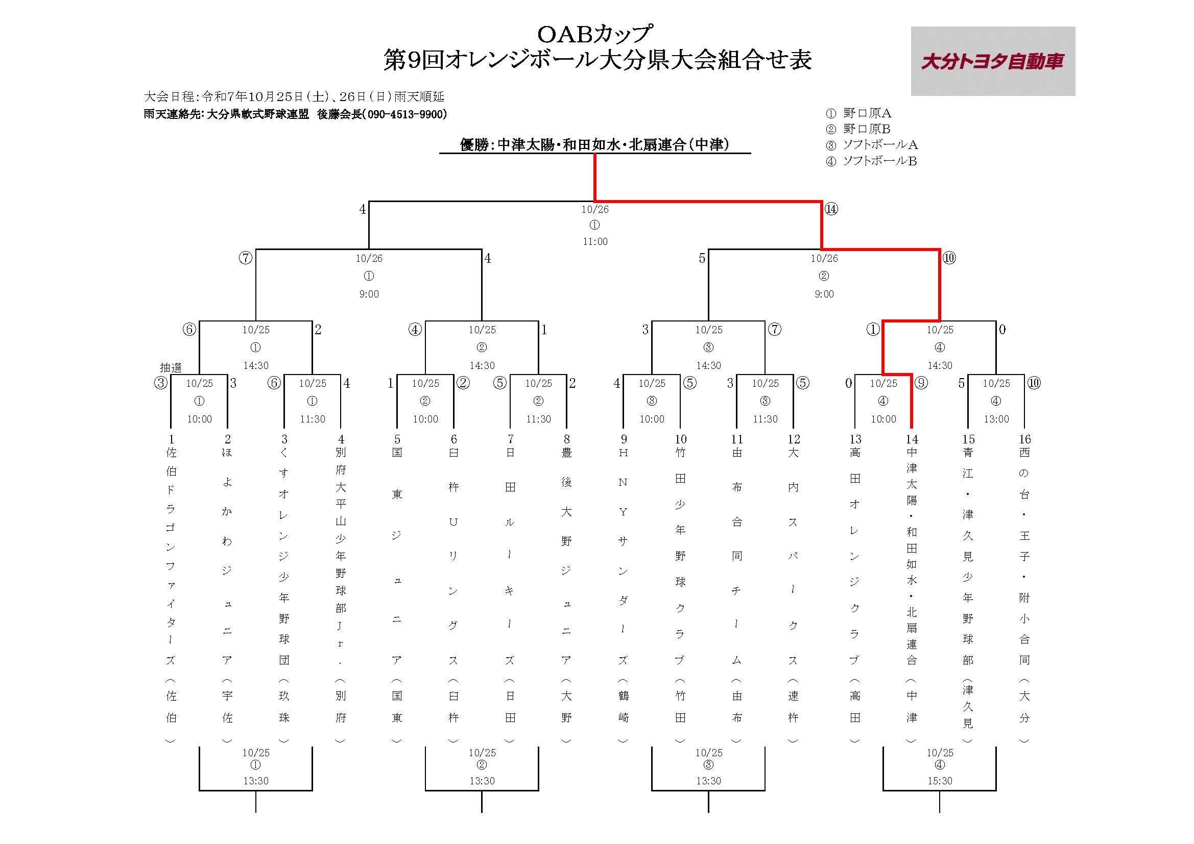 ・OABカップ第9回オレンジボール大分県学童軟式野球大会は、《中津太陽・和田如水・北扇連合》が優勝いたしました。