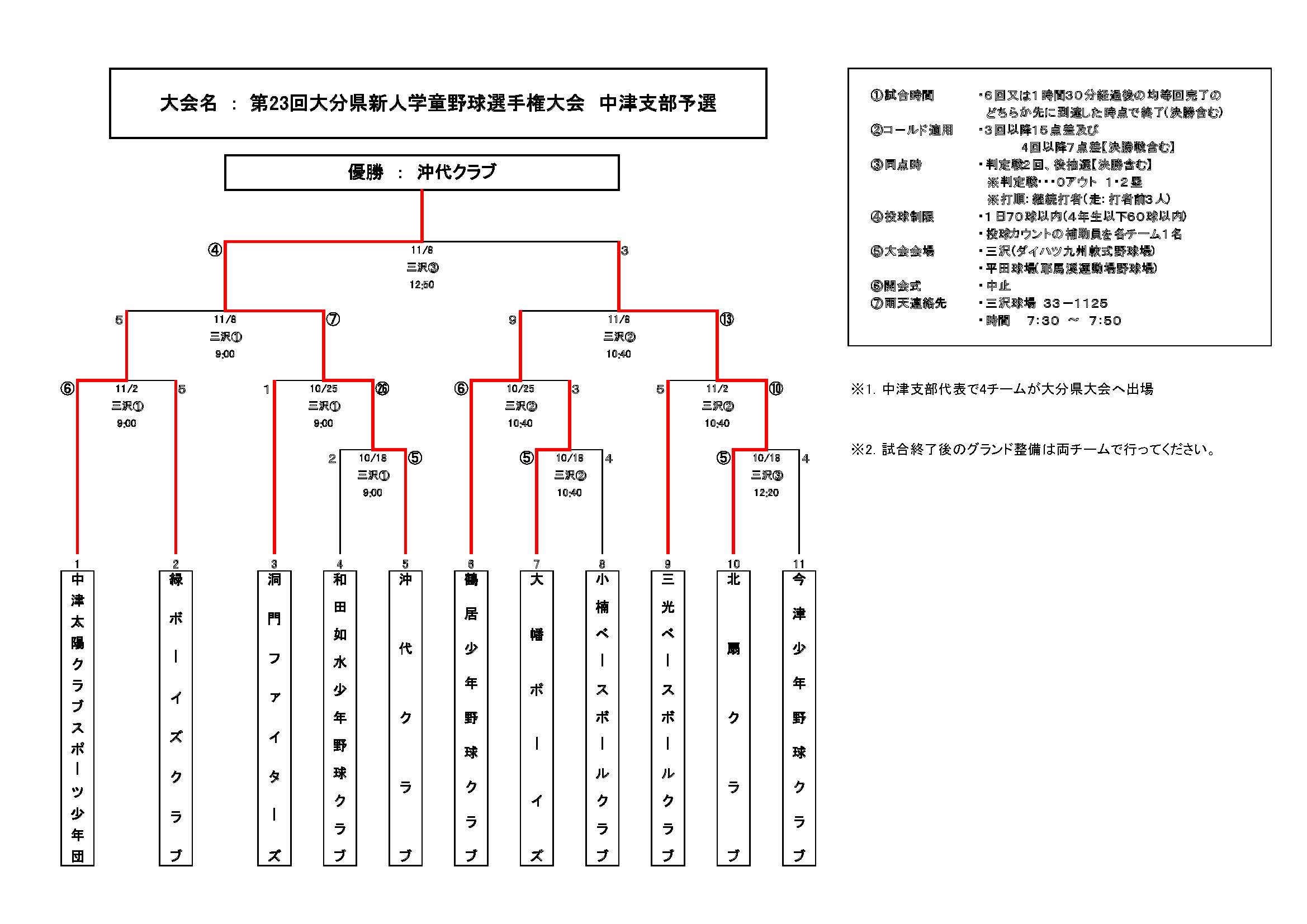 2025年11月2日/ 最終更新日時 : 2025年11月9日 中津レンタカー組合せ・結果2025 ・11/08 第23回大分県新人学童軟式野球選手権大会中津支部予選は《沖代クラブ》が優勝しました。・第23回大分県新人学童軟式野球選手権大会中津支部予選は《沖代クラブ》が優勝しました。click□(PDFファイル) ⇒ 令和7年度新人学童大会中津支部予選⑪ ≪記事一覧に戻る