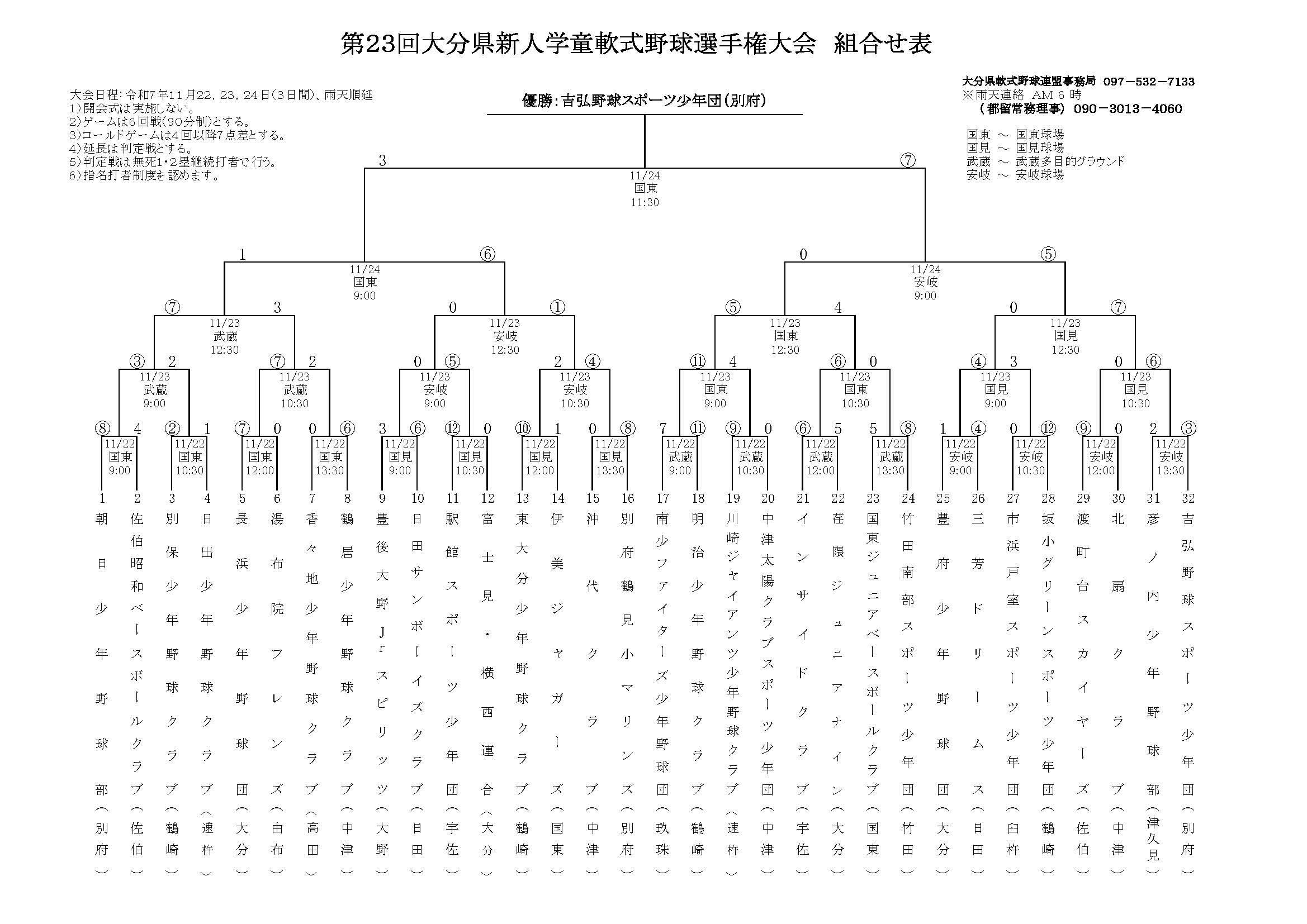 2025年11月24日/ 最終更新日時 : 2025年11月24日 中津レンタカー組合せ・結果2025 ・11/24 【県大会】第23回大分県新人学童軟式野球選手権大会の大会結果・第23回大分県新人学童軟式野球選手権大会の大会結果です。1.click□(PDFファイル) ⇒ R7県新人大会結果 ≪記事一覧に戻る