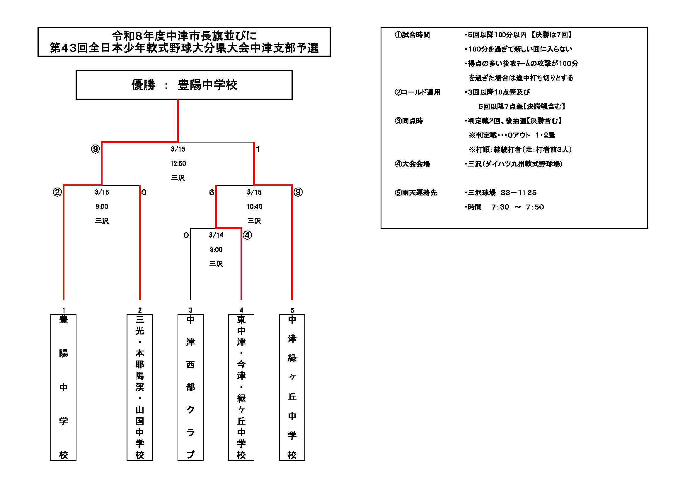 2026年3月15日/ 最終更新日時 : 2026年3月15日 中津レンタカー組合せ・結果2026 ・03/15 令和8年度市長旗並びに第43回全日本少年軟式野球大分県大会中津支部予選:優勝《豊陽中学校》・令和8年度市長旗並びに第43回全日本少年軟式野球大分県大会中津支部予選は《豊陽中学校》が優勝しました。※click□(PDFファイル) ⇒ 全日本中学・市長旗2026③ ≪記事一覧に戻る