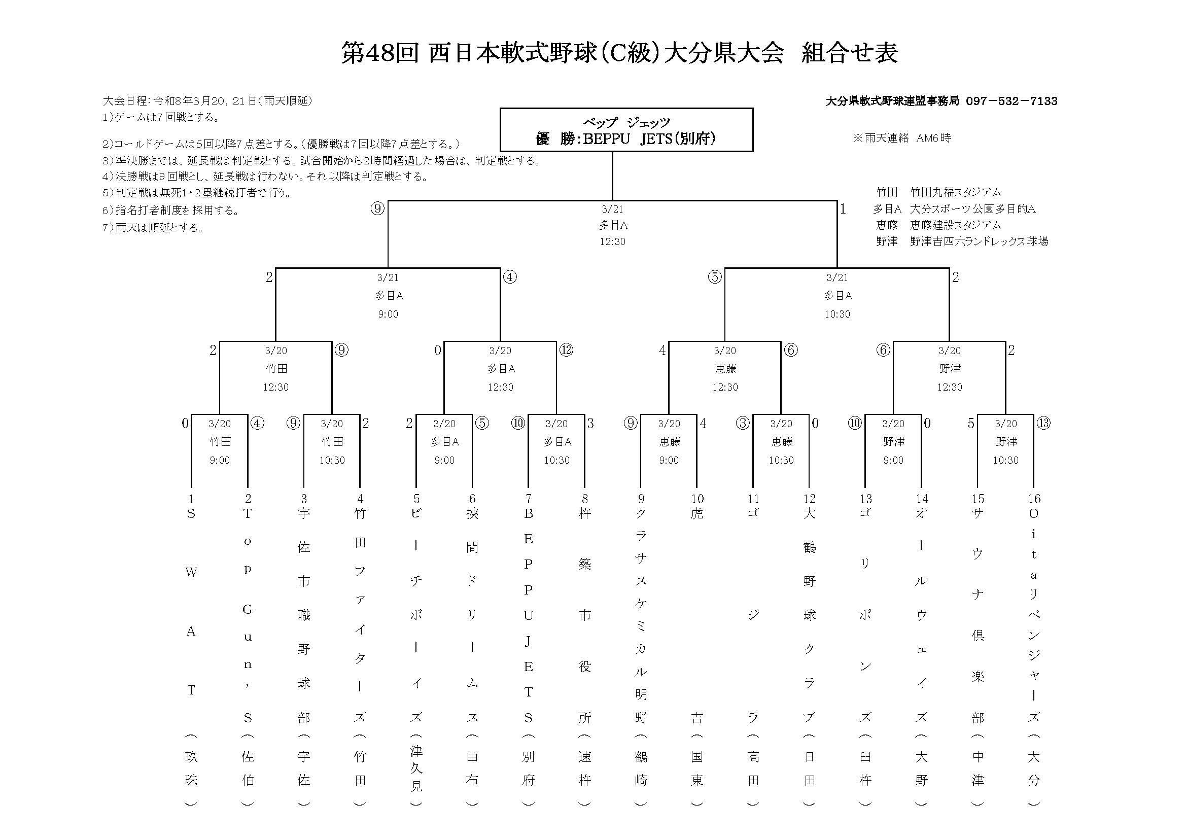 2026年3月21日/ 最終更新日時 : 2026年3月21日 中津レンタカー組合せ・結果2026 ・03/21 【県大会】第48回西日本軟式野球(C級)大分県大会の大会結果・第48回西日本軟式野球(C級)大分県大会の大会結果。※1.click□(PDFファイル)を表示 ⇒ R8西日本C級県大会結果 ≪記事一覧に戻る