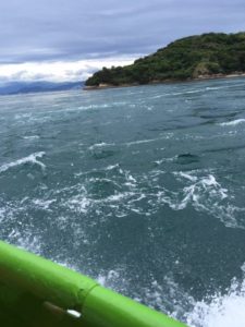 急流地点に着くと船のエンジンを止めて潮の流れを観察します。