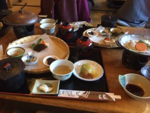 御神楽を見物したあとにふるまわれるという精進料理と宮崎豚肉の蒸し焼きをいただきました。