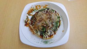 からあげ専門店とりあんの唐揚げ弁当 と お好み焼きなんどいやの豚玉お好み焼きです 😉