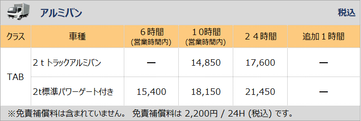 | TAB アルミバントラック2t標準パワーゲート付(3人乗り) |